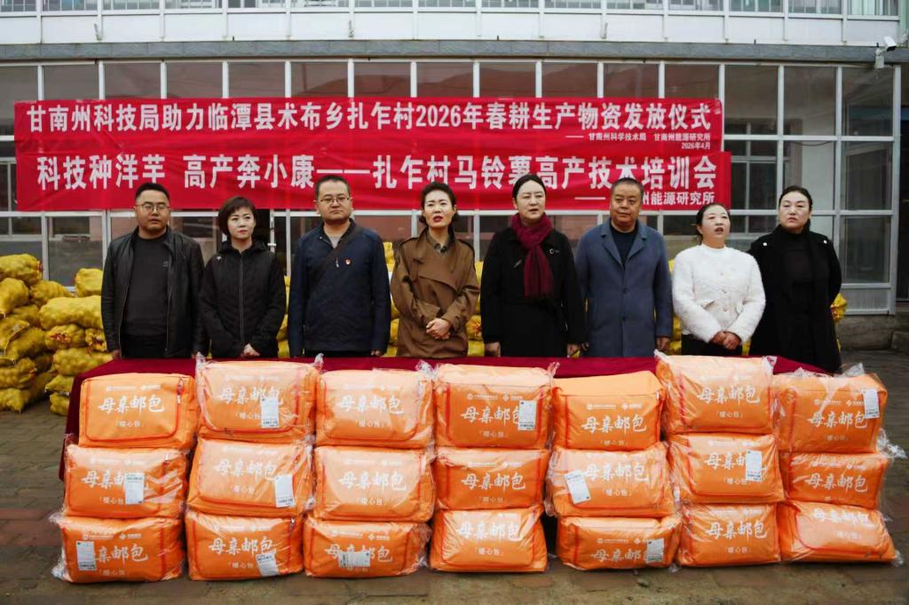 人勤春来早,春耕正当时。眼下正值春耕备耕关键时节,为切实解决定点帮扶村临潭县术布乡扎乍村农户春耕物资短缺的急难愁盼问题,保障全村农业生产有序起步、粮食产业稳产增效,近日,甘南州科技局能源研究所专程赴扎乍村,隆重举行2026年度春耕生产物资免费发放仪式。这是州科技局、州能源研究所连续第七年为扎乍村群众免费发放春耕物资,七年坚守、持续发力,用实打实的帮扶举措,为乡村振兴筑牢农业生产根基,赢得了当地干部群众的广泛赞誉。
