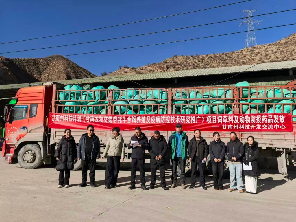 12月1日,州科技局党组成员、副局长张霖带领州科技开发交流中心《甘南农牧交错带舍饲养殖及疫病防控技术研究推广》项目组人员,赴新瑞丰高原牛羊养殖种植技术开发农民专业合作社,开展饲草料及动物防疫药品发放工作,为合作社牲畜安全越冬奠定了坚实基础。