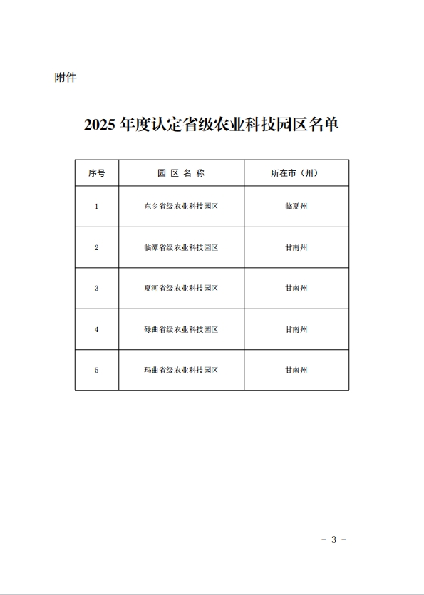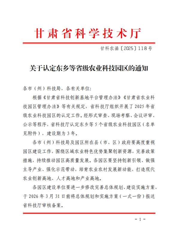 近日,根据省科技厅下发通知,我州临潭、玛曲、碌曲、夏河四县依托各自主导产业申报的省级农业科技园区,经形式审查、专家答辩、现场考察等多环节严格评审,正式获省科技厅批准建设,2025年是我州历年来省级农业科技园区获批最多的一年,这既是全面实施创新驱动发展战略与乡村振兴战略的生动实践,也是深入推进“强科技”行动的具体体现。截至目前,我州已有国家农业科技园区1家,省级农业科技园区7家。