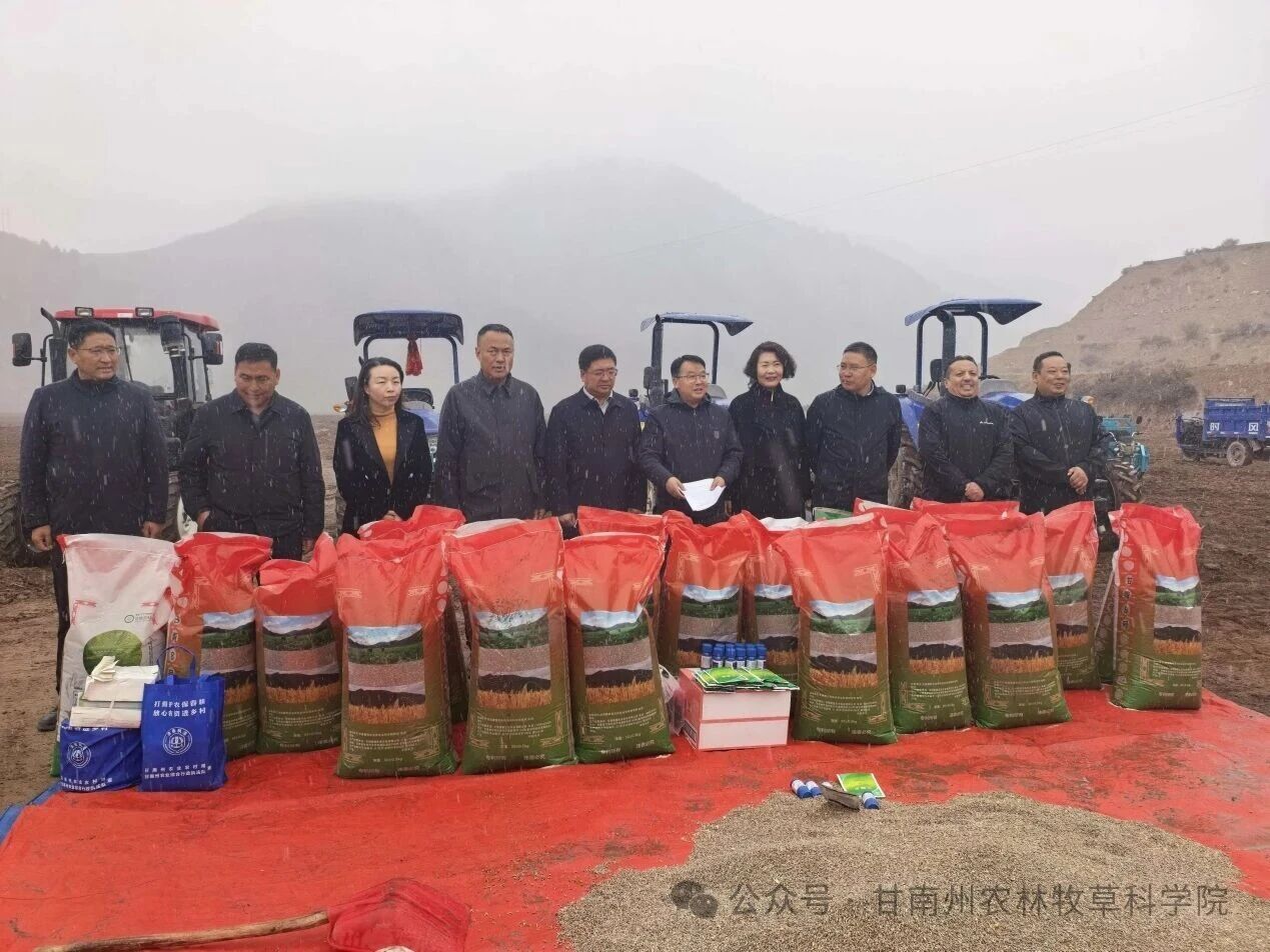 4月16日,由甘南州农林牧草科学院植物与耕地保护研究所主持的“甘南州青稞智慧化栽培及抗倒伏综合技术集成创新应用原种核心示范区建设”项目开耕仪式在碌曲县双岔镇举行。州科技局党组书记、局长久特,州农林牧草科学院党委书记杨国庆,碌曲县委副书记看召本,州科技局副局长杨琳,州农林牧草科学院副院长牛小莹,碌曲县人民政府副县长拉毛东知等出席仪式。陇盛农业生态有限责任公司等企业、合作社负责人及州县农业科技人员和农牧民群众代表共计80余人参加仪式。
